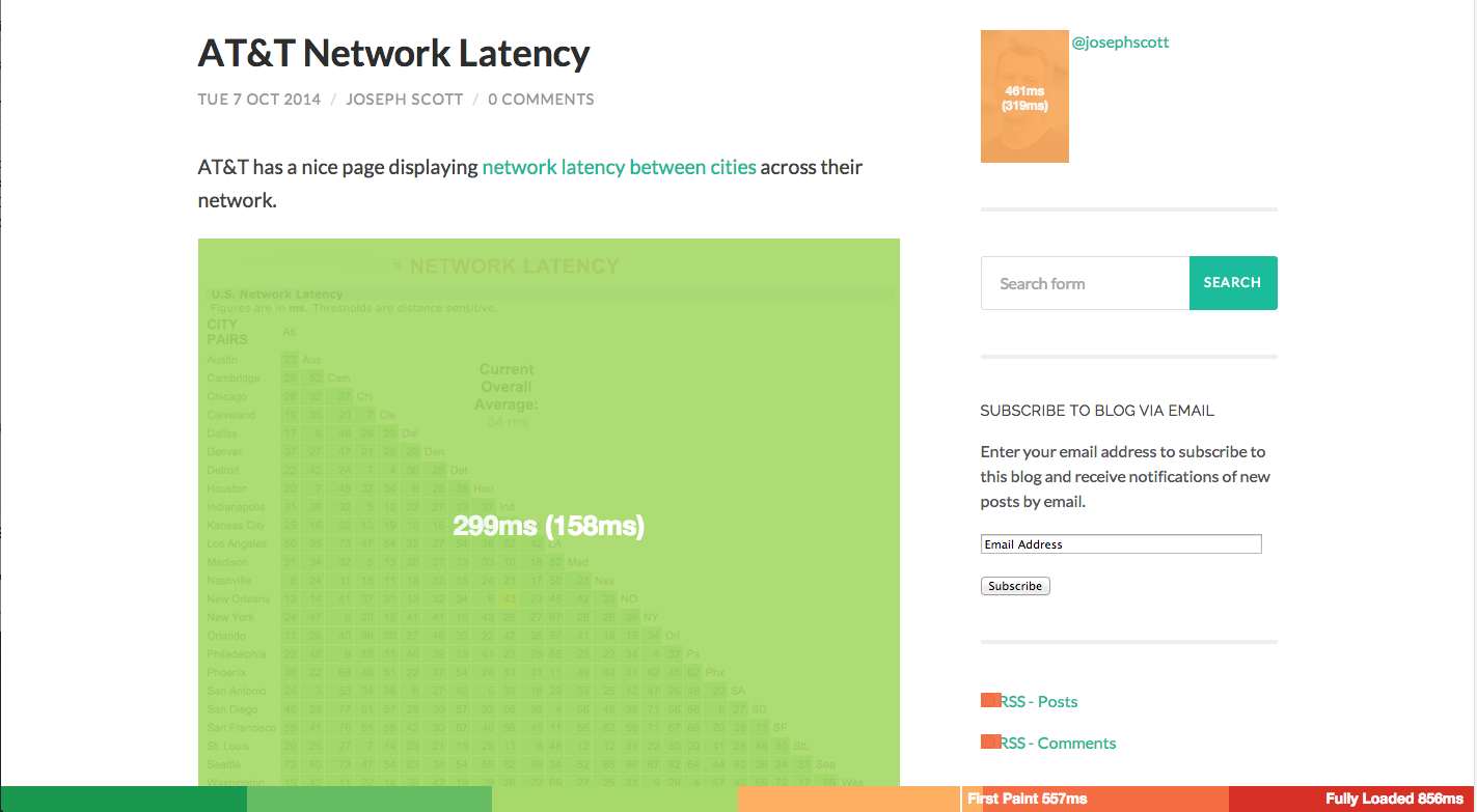 A bookmarklet to create a front-end performance heatmap of resources loaded in the browser using the Resource Timing API. A browser with support for the Resource Timing API is required.