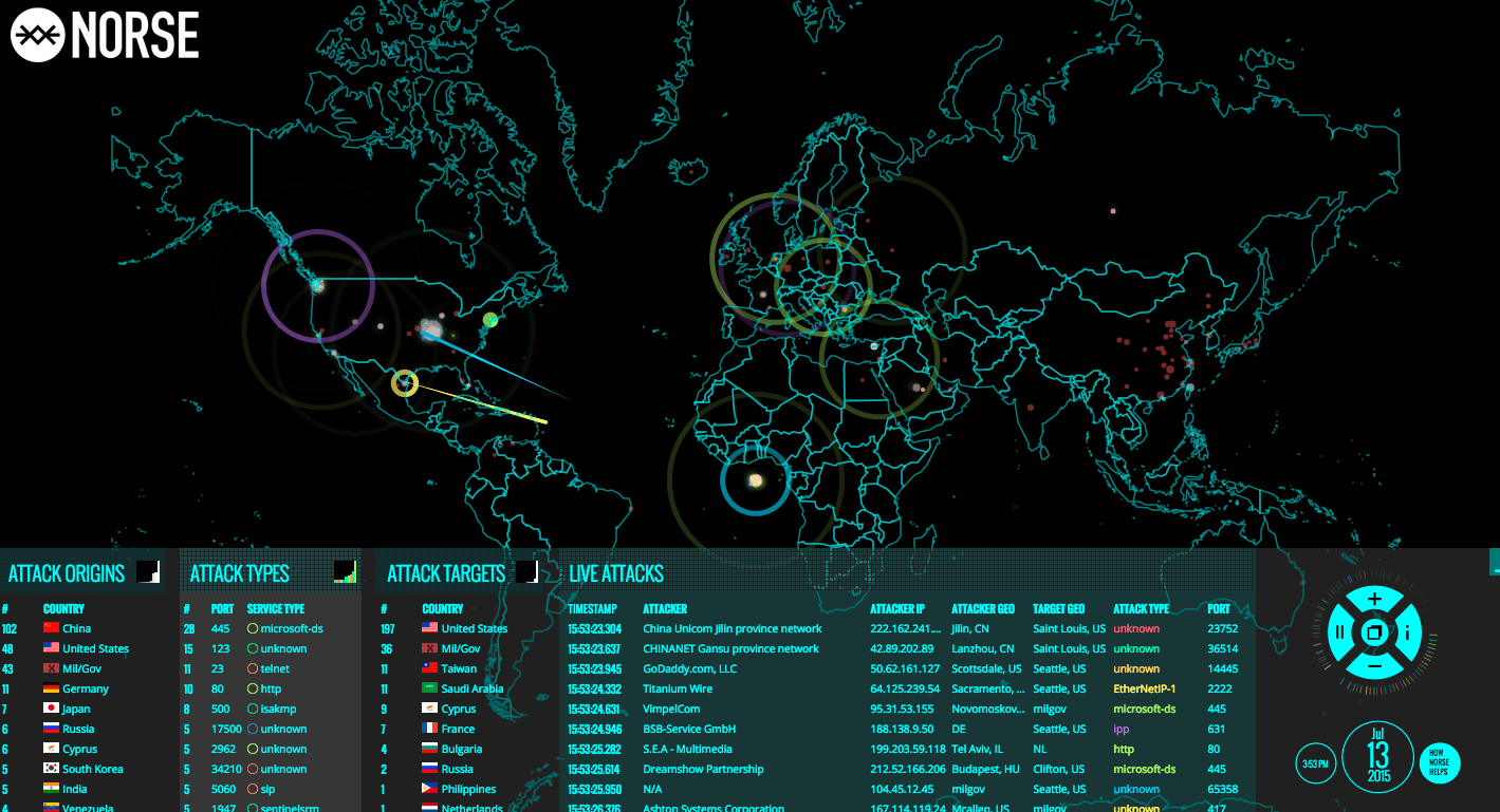 Categories Posts Norse Attack Map Post author By josephscott Post date Tue 14 Jul 2015 No Comments on Norse Attack Map The Norse Attack Map: Not sure any of that data is particularly actionable, but the visualization is neat. ← LTE and 3G in SLC → Ad Blockers Leave a Reply Cancel reply Your email address will not be published. Required fields are marked * Comment Name * Email * Website