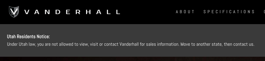 Under Utah law, you are not allowed to view, visit or contact Vanderhall for sales information. Move to another state, then contact us.