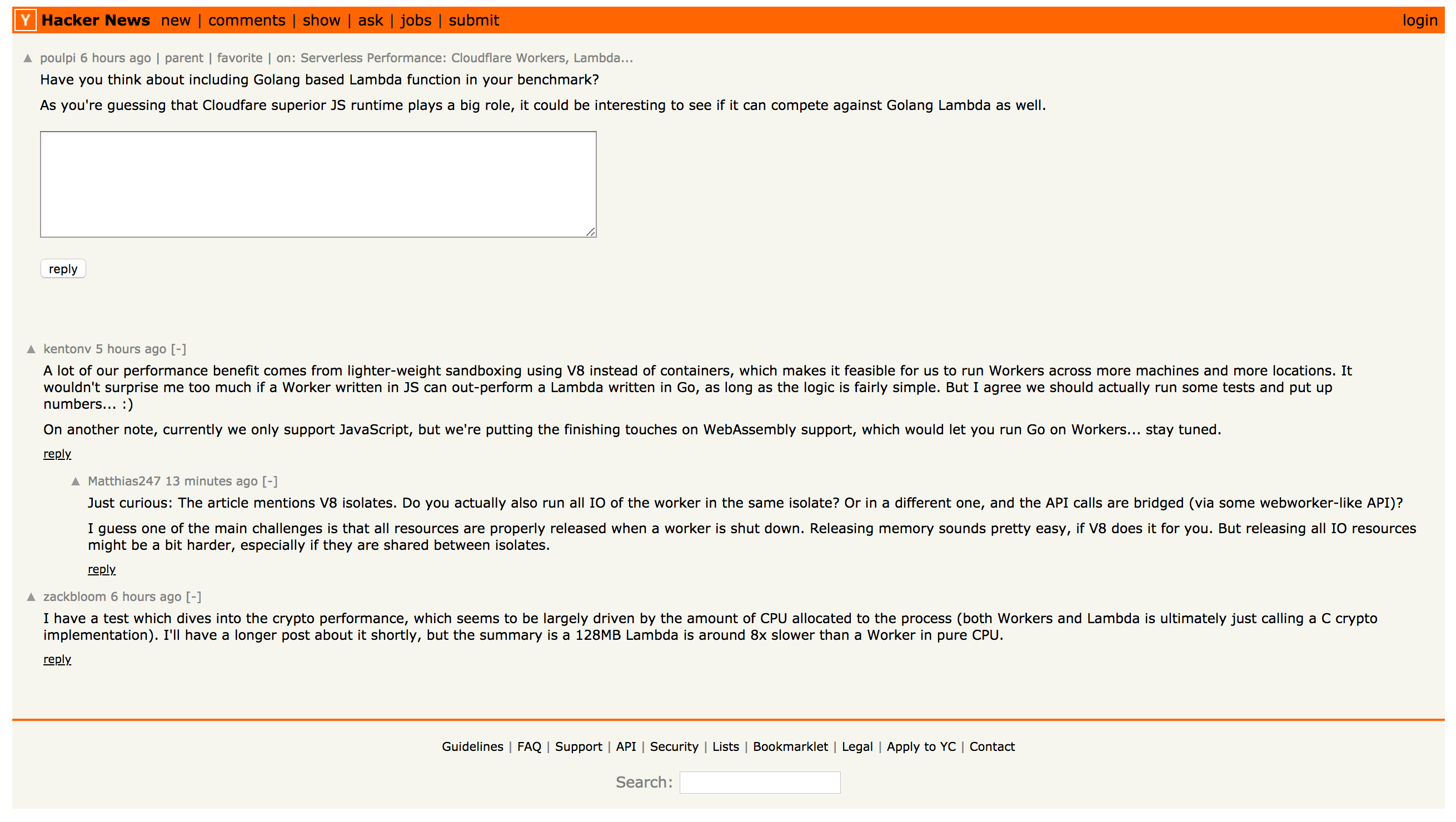 A recent thread on Hacker News discussing Cloudflare Workers brought up an interesting item from Kenton Varda, tech lead for their Workers service ( # ):
