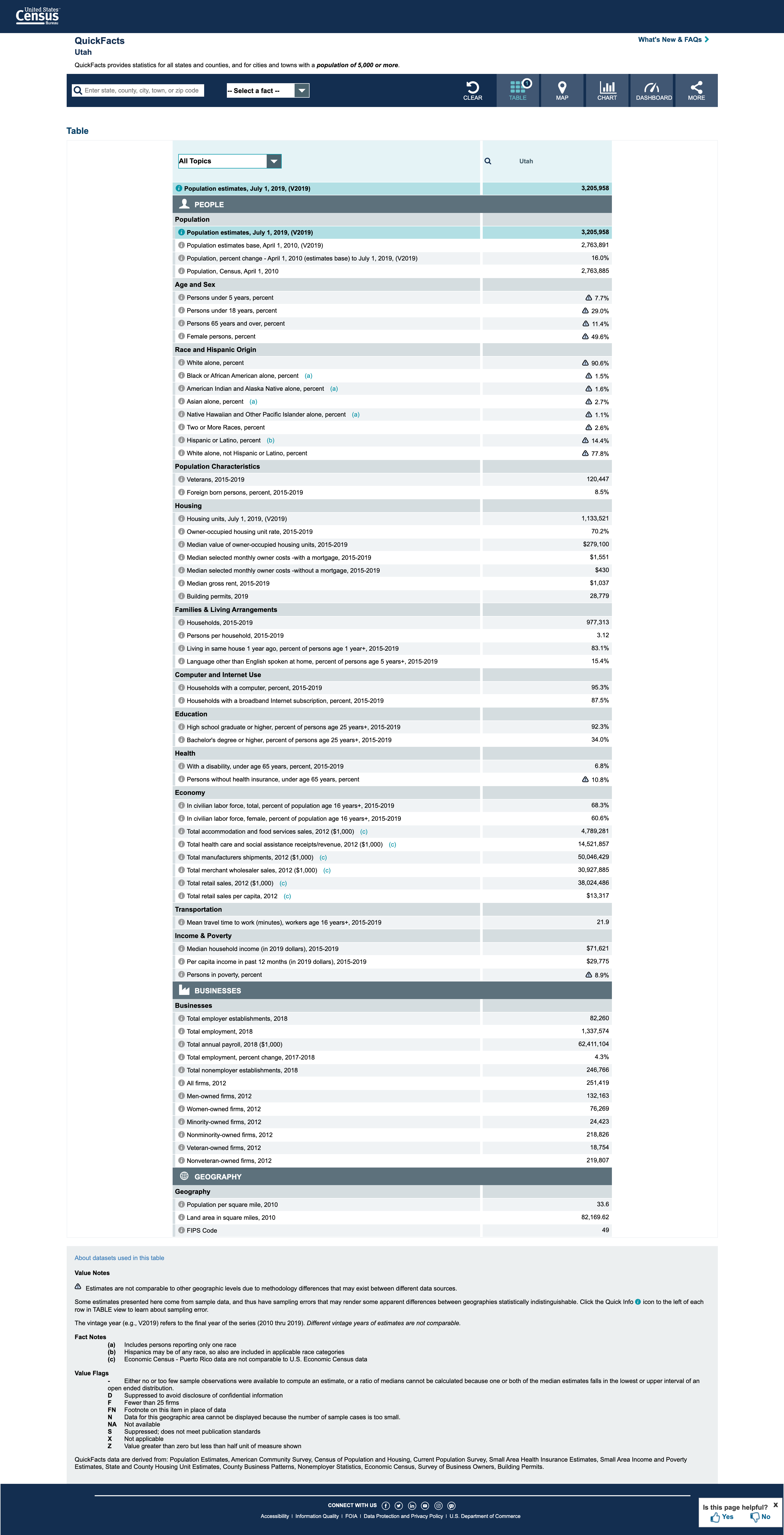 – 3,205,958 people in Utah ( estimate from 1 July 2019, screenshot )