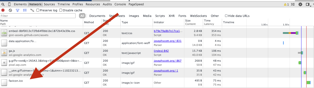 Back in November I mentioned a Chrome browser ticket to include favicon requests in the network panel: