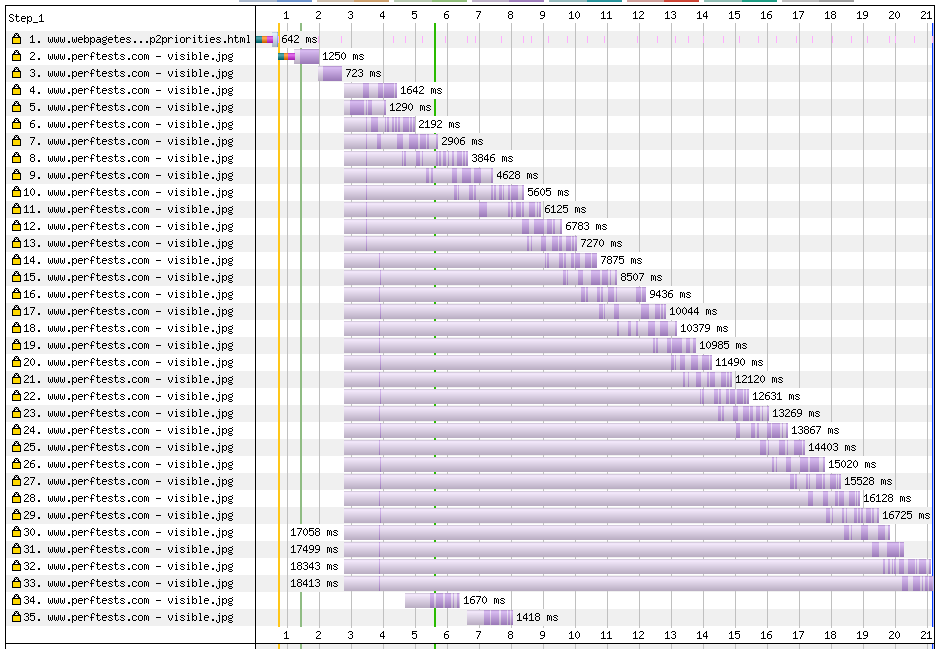 Here are a few examples. First, a priority test under “3G Slow”, where you can see the throttling in action: