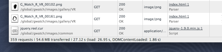 From the perf.fail blog comes: LG G Watch site delivers an images-gone-wrong 54MB RWD experience. Honestly the first thing I did after reading that was open the page in Chrome with the network panel showing, just to confirm this was real: